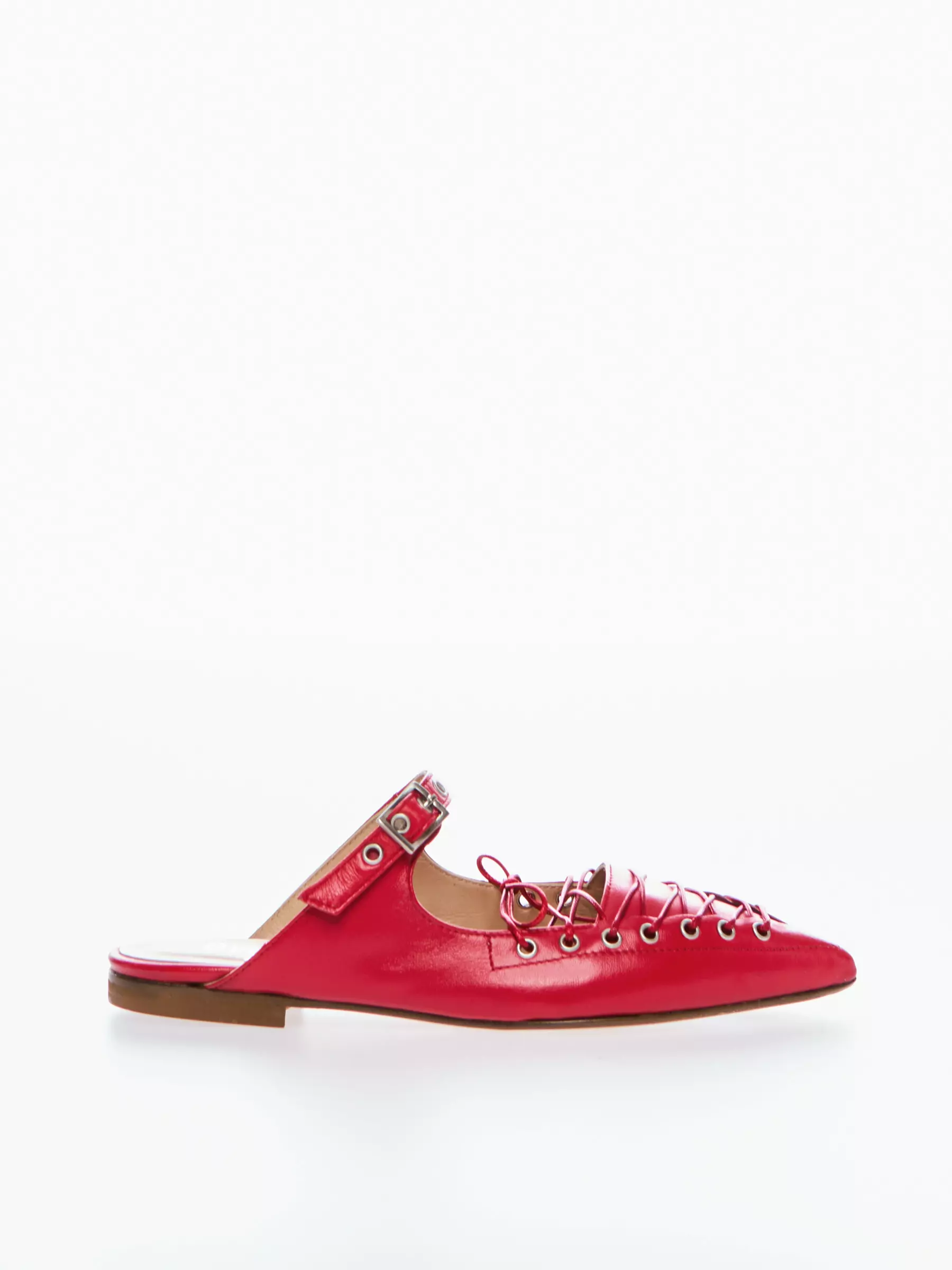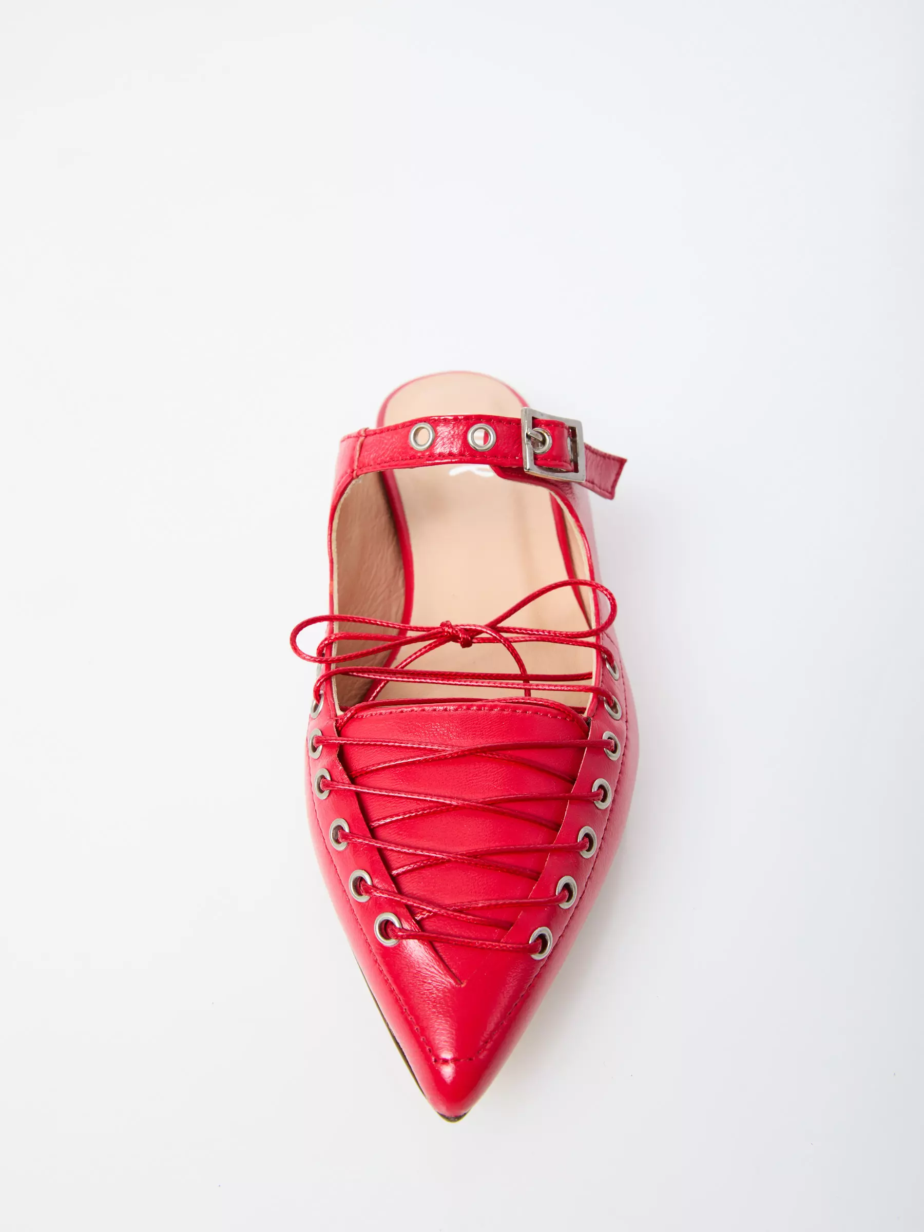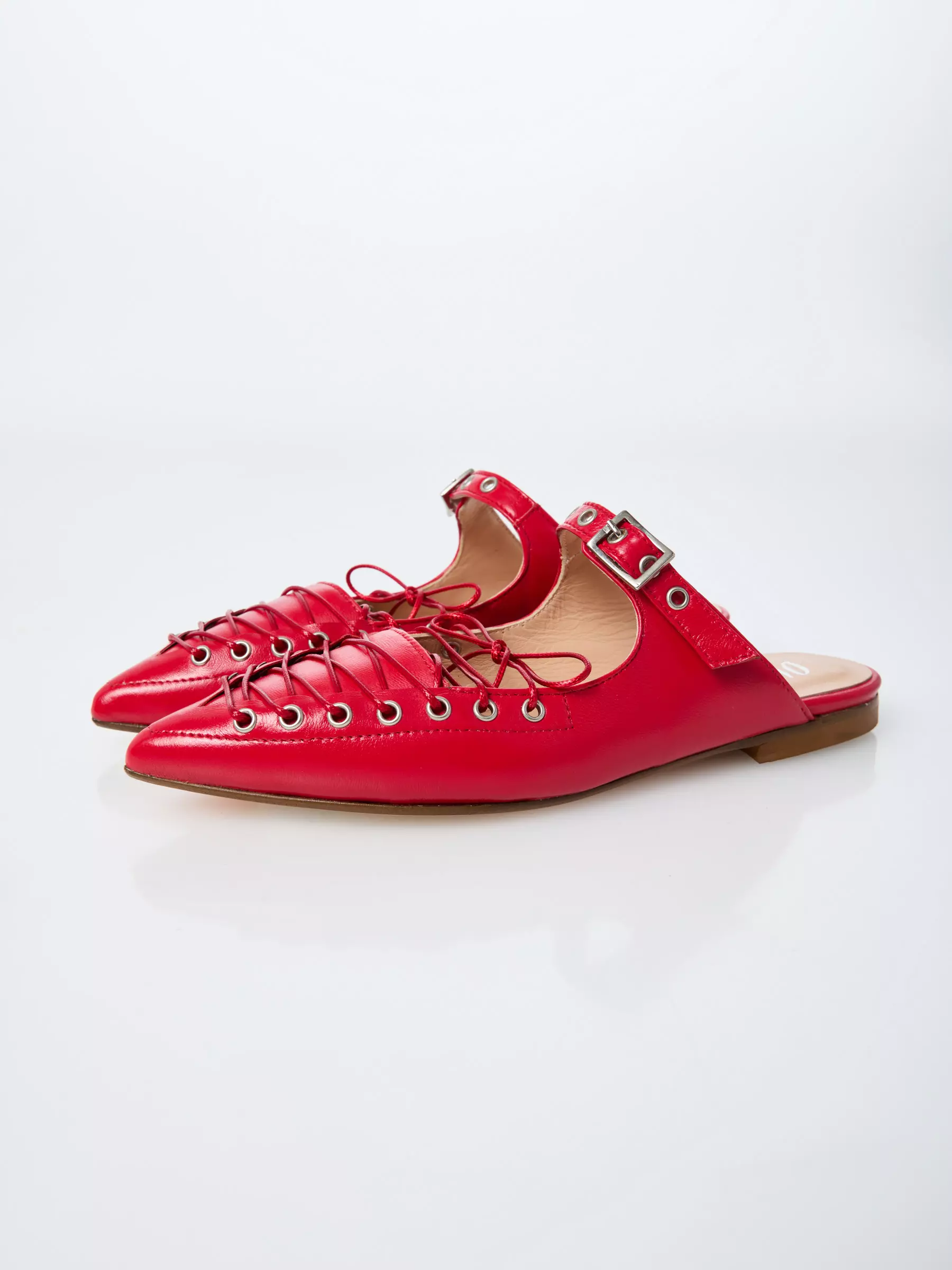 Saboti din piele naturala fina cu varf ascutit, accesorizati cu siret ce ofera un stil sport-casual si unicitate. Au bareta reglabila cu catarama metalica ce ofera fixarea piciorului in sabot. Sunt perfecti pentru tinutele zilnice smart-casual atat la o rochie cat si la pantaloni sau jeans.