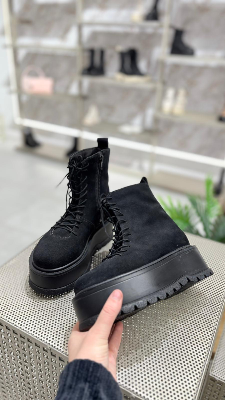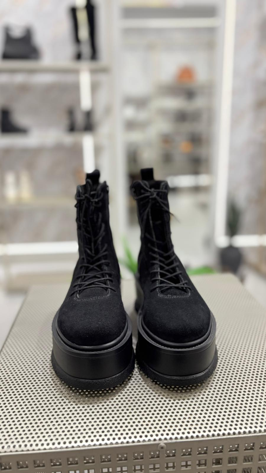 Ghete realizate din piele naturala intoarsa reglabile din siret si inchidere cu fermoar lateral. Interiorul este captusit cu burete termic pentru sezonul rece. Talpa este realizata din cauciuc foarte usor si flexibil ce ofera confort sporit pe tot parcursul purtarii. Grosime talpa 5 cm.