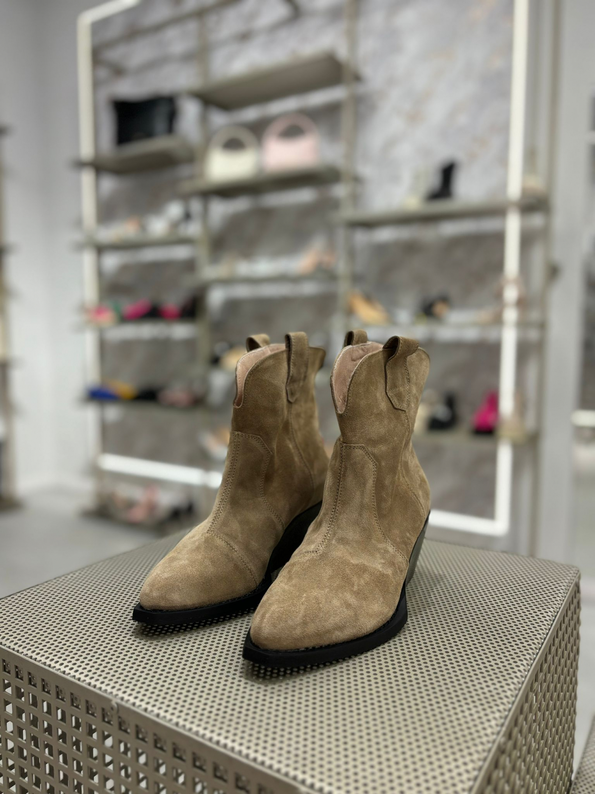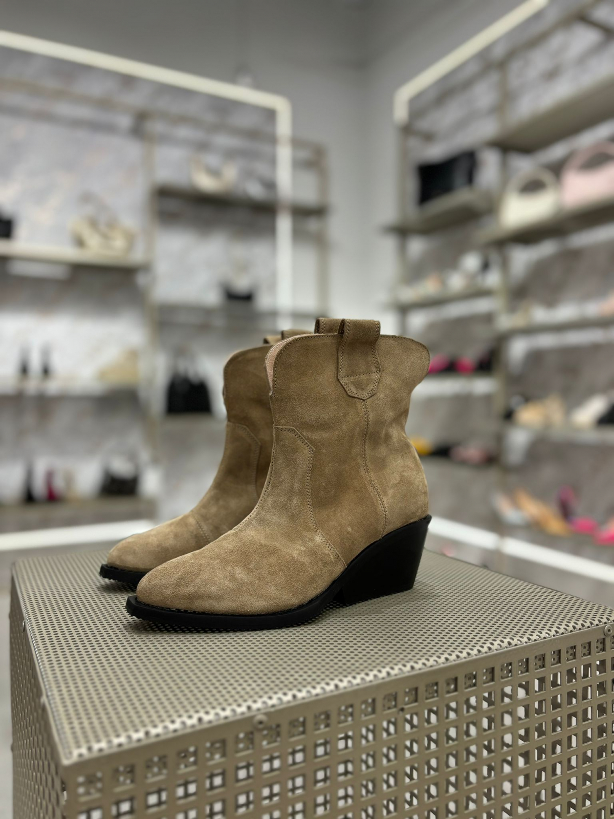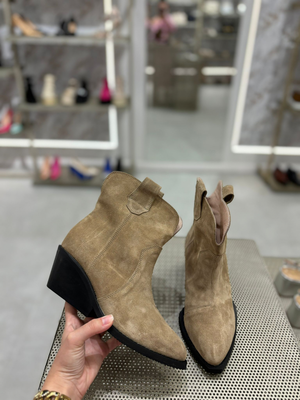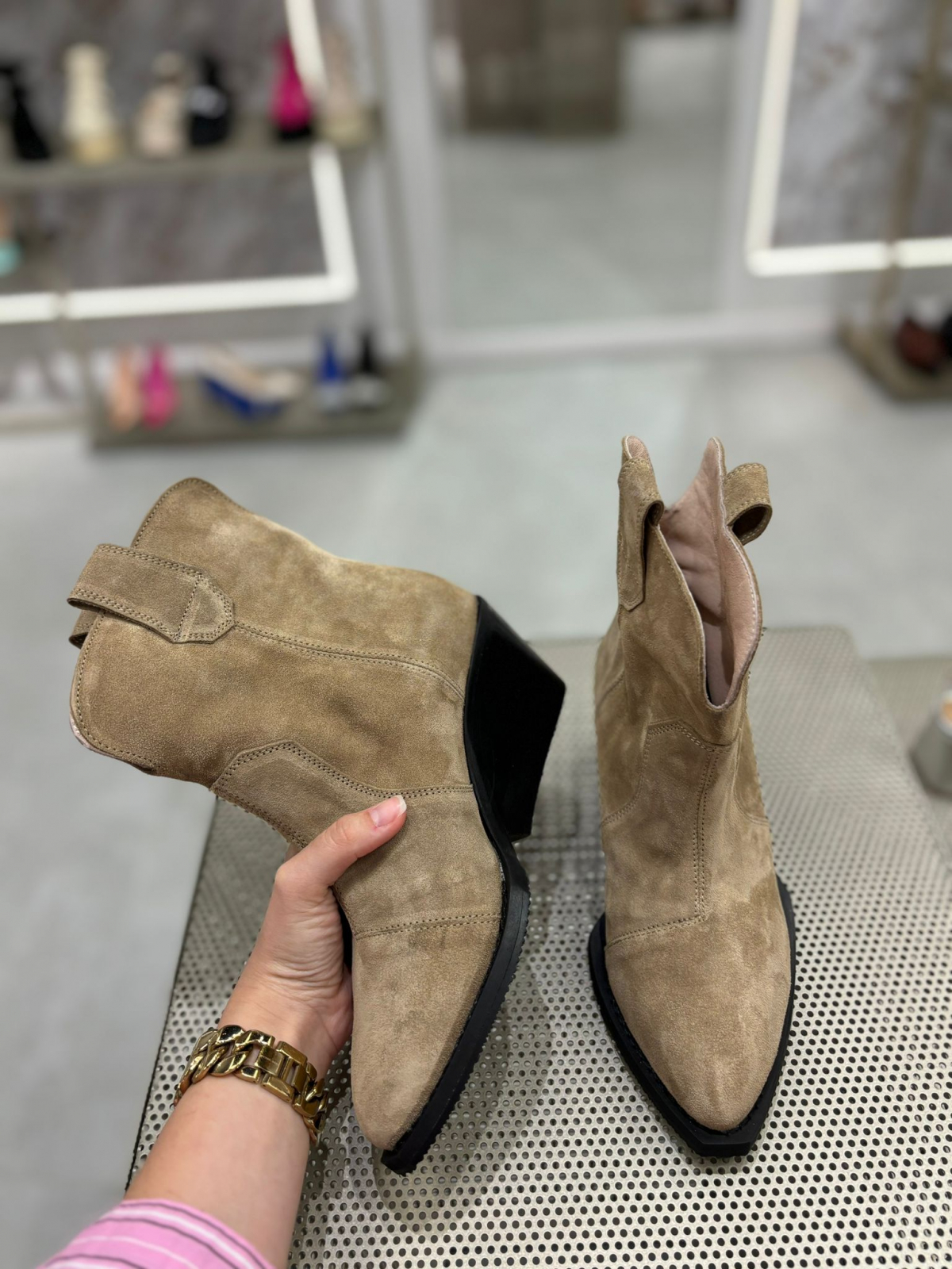 Ciocate bej realizate din piele naturala intoarsa, toc de 7 cm. Pot fi purtate pe timp de vara la tinute rochii, fuste sau pantaloni.