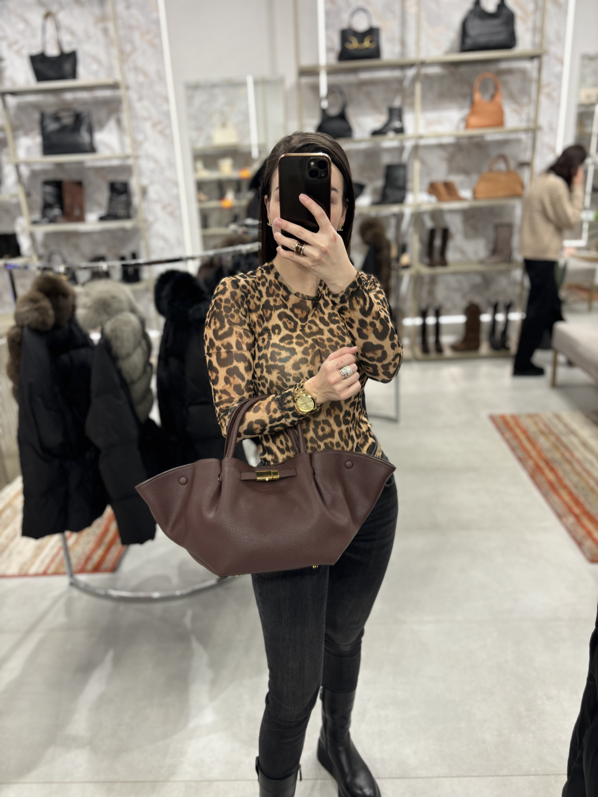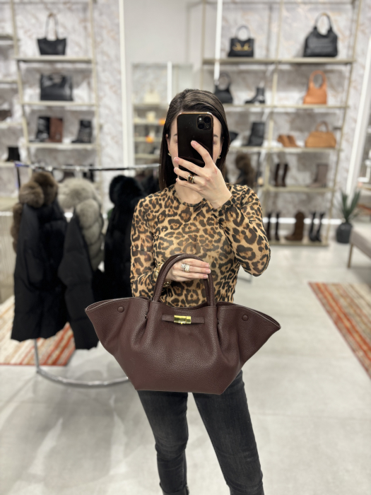 Geanta realizata din piele naturala, inchidere cu capse magnetice, bareta lunga detasabila. Este un model foarte incapator si cu acces usor.