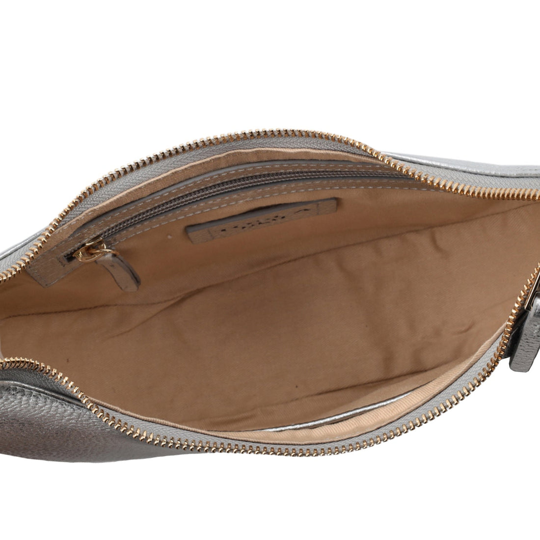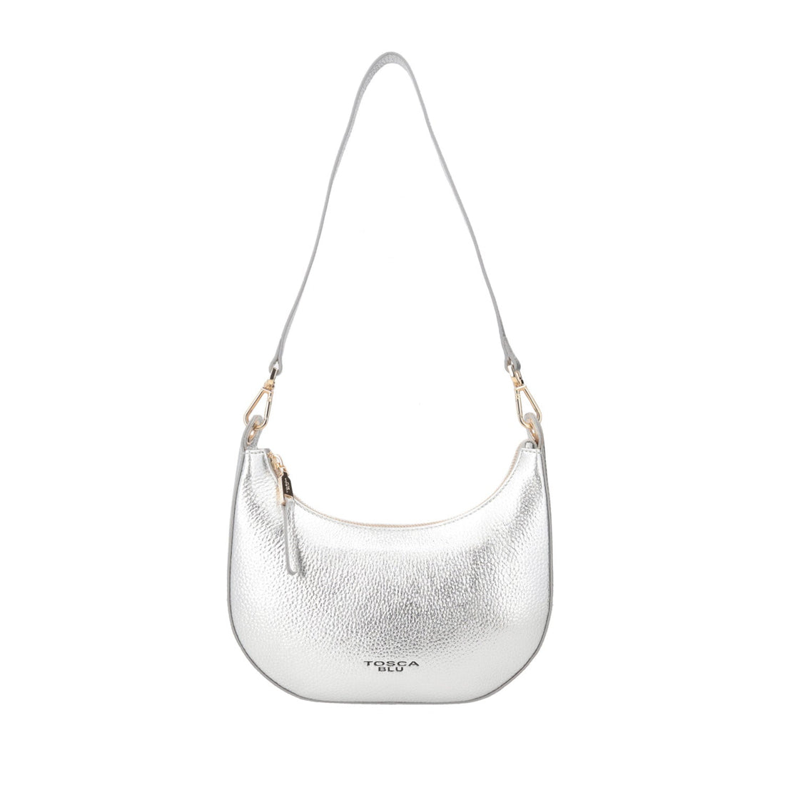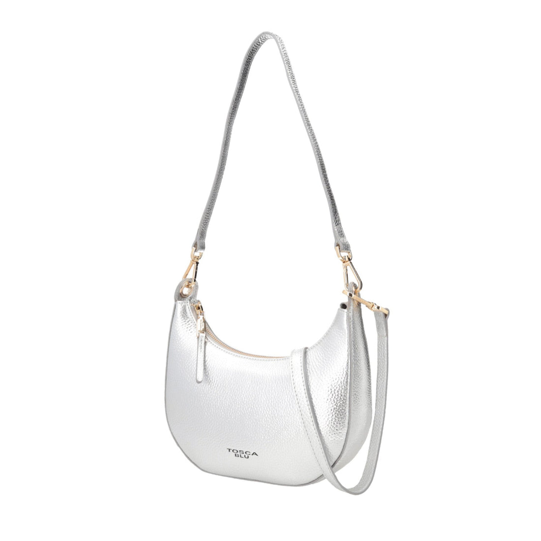 Geanta de dimensiune mica spre medie realizata din piele naturala stralucitoare. Are o forma de semiluna ce ii da un aspect unicat si doua baretel detasabile, una mai scurta si a doua mai lunga reglabila. Geanta este foarte potrivita atat la un eveniment cat si de zi cu zi.