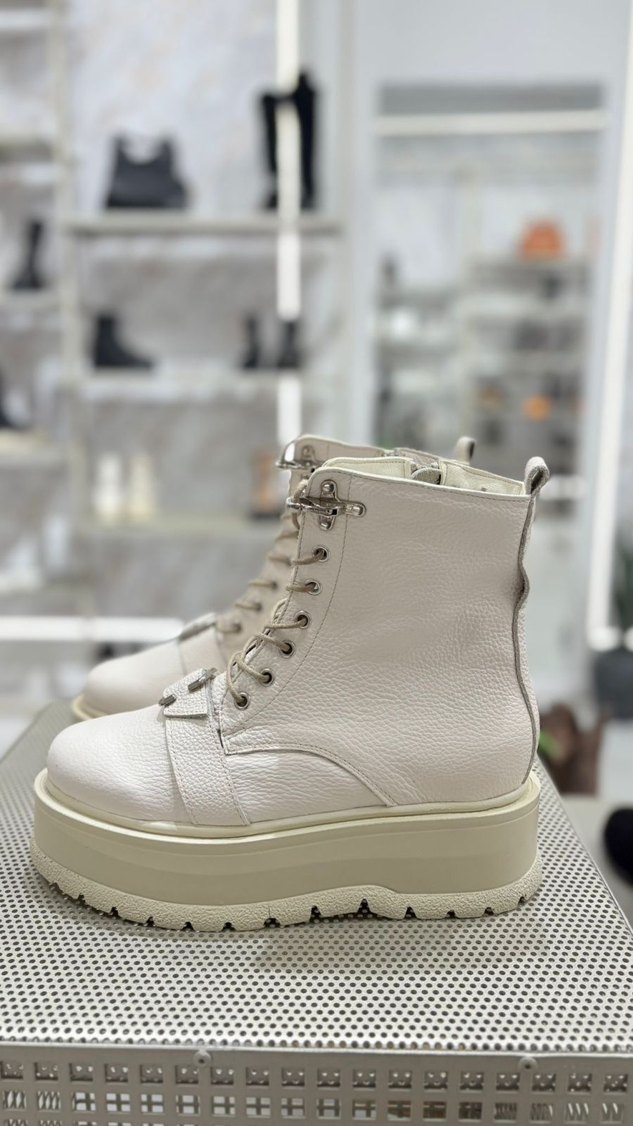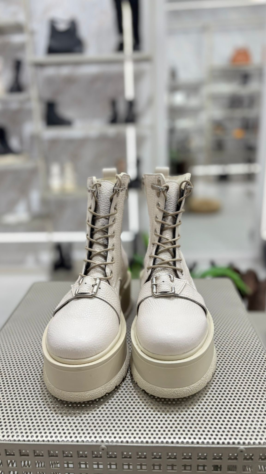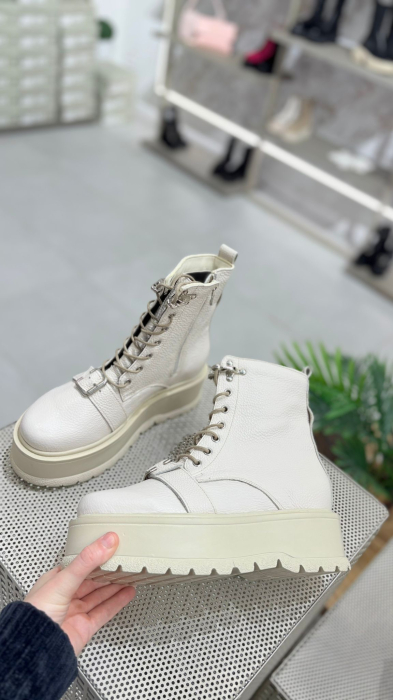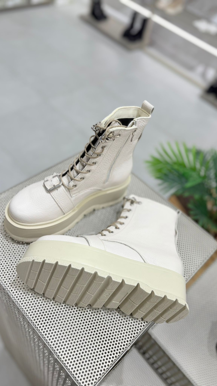 Ghete realizate din piele naturala de bizon reglabile din siret si inchidere cu fermoar lateral. Interiorul este captusit cu burete termic pentru sezonul rece. Talpa este realizata din cauciuc foarte usor si flexibil ce ofera confort sporit pe tot parcursul purtarii. Grosime talpa 5 cm.