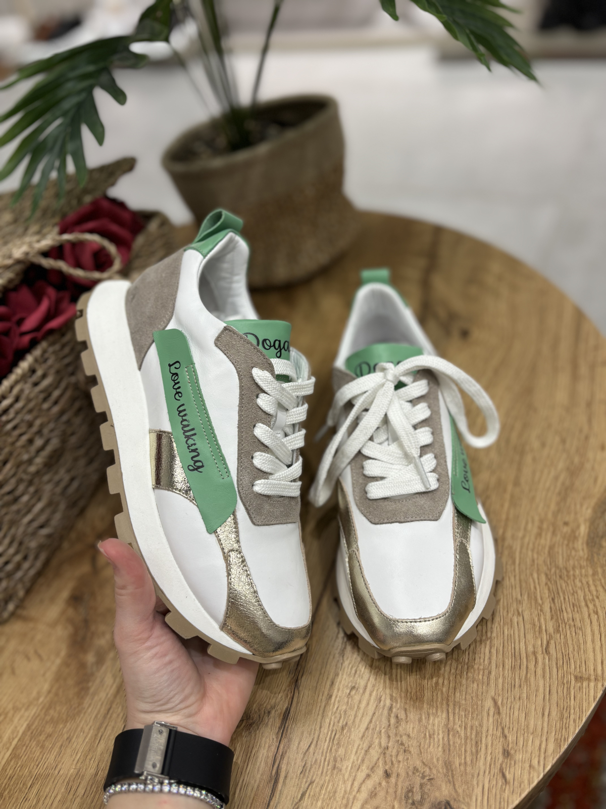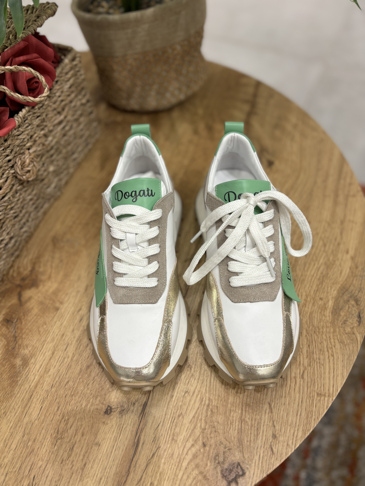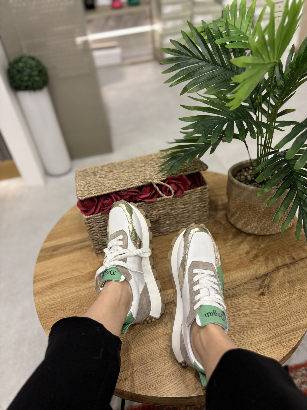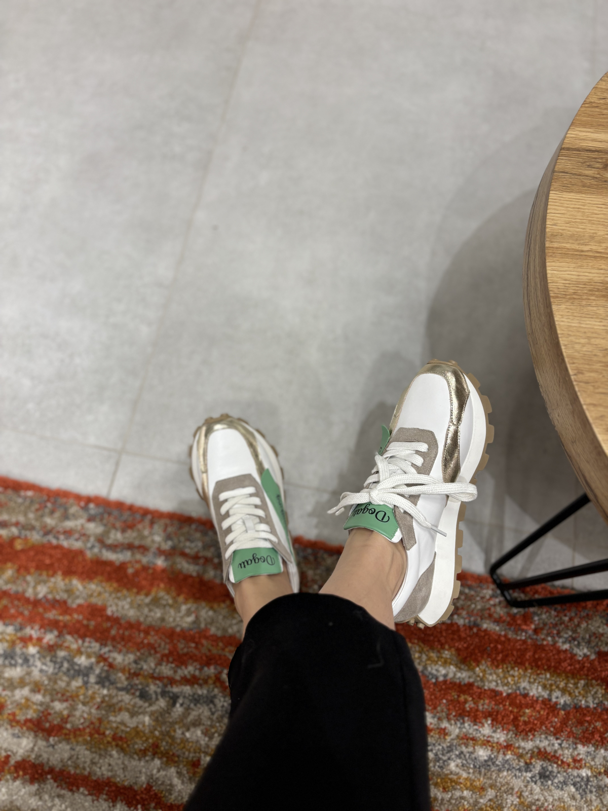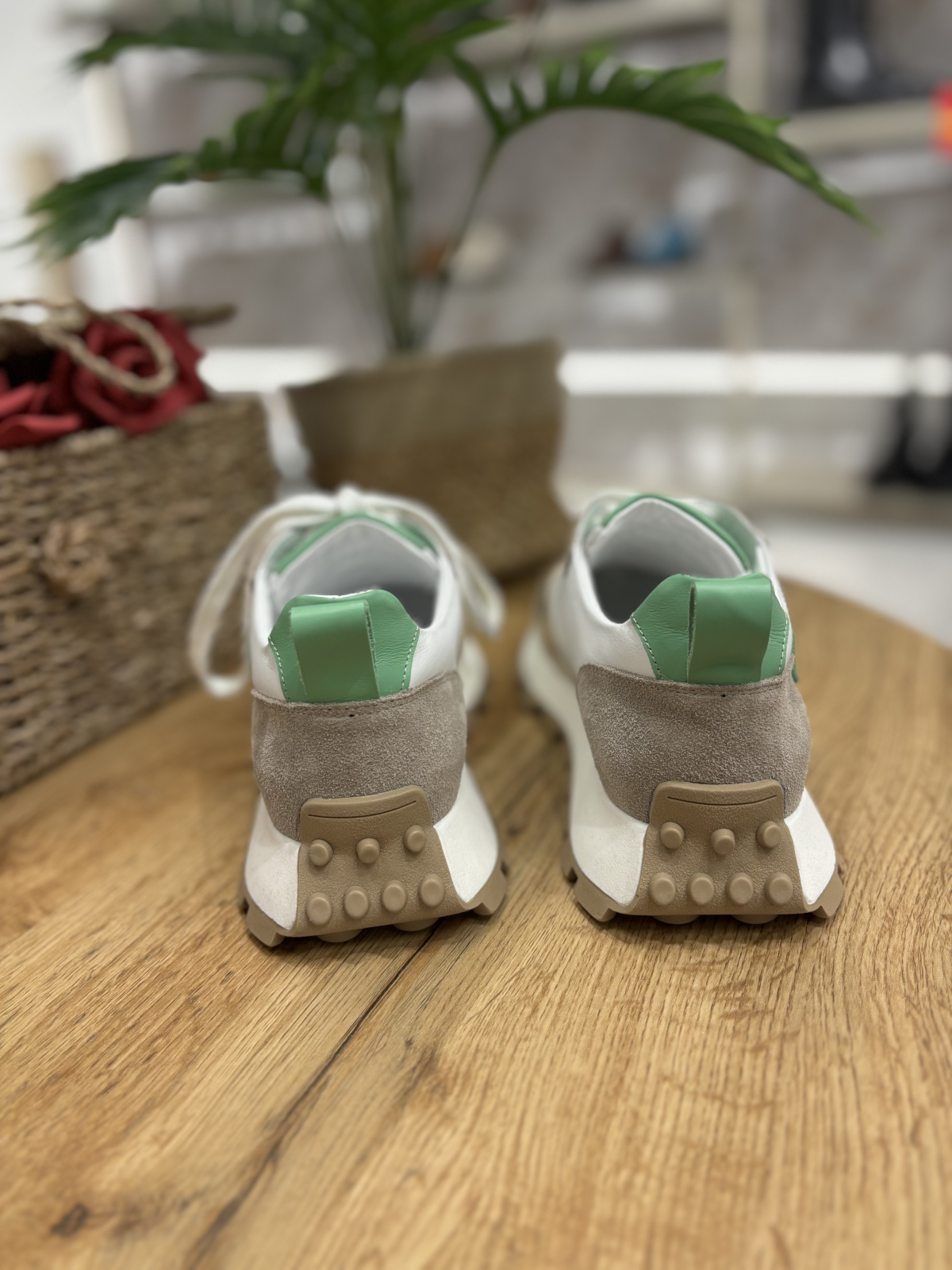Adidasi realizati din piele naturala interior-exterior cu talpa groasa de 3 cm, foarte confortabili si versatili la tinute casual.