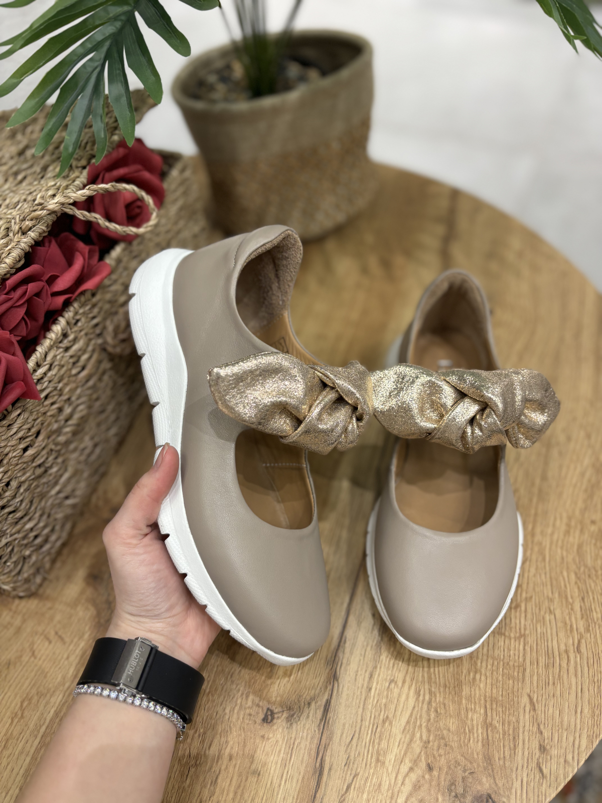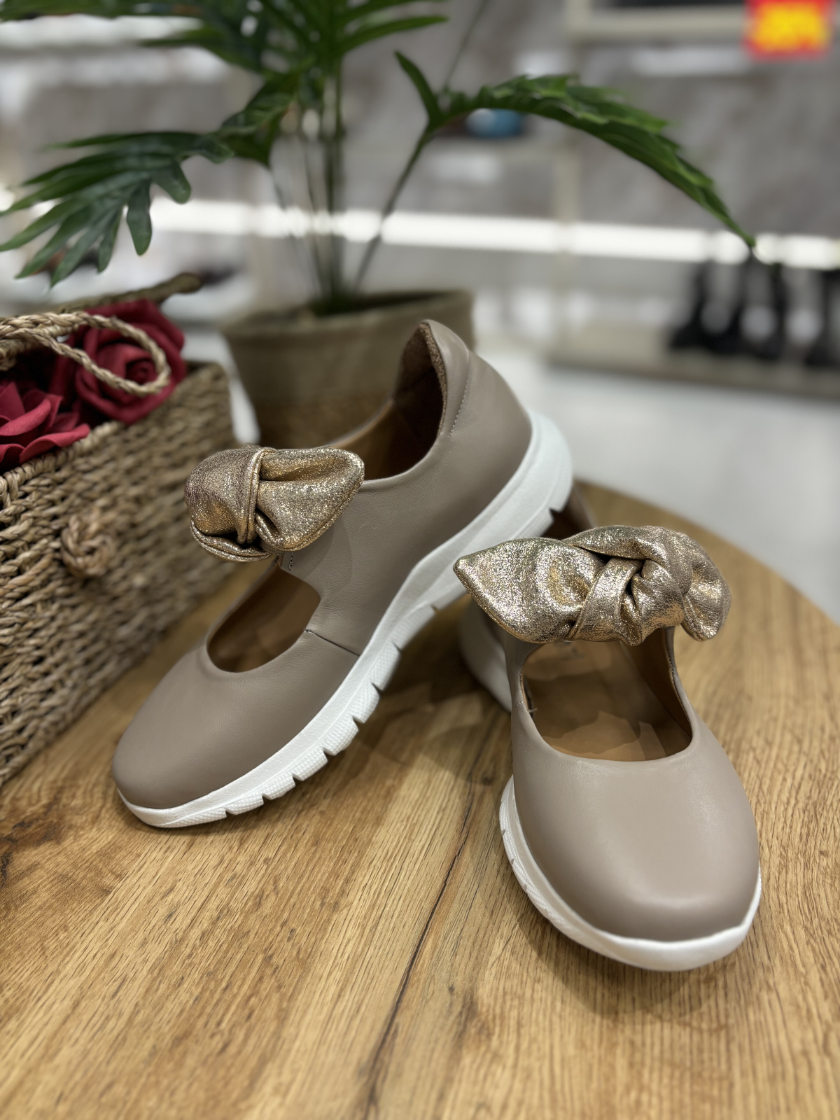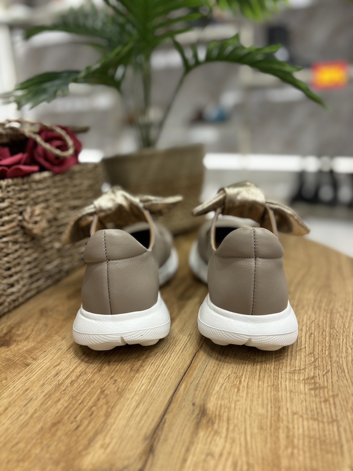 Balerini realizati din piele naturala interior-exterior, accesorizati cu funda aurie din piele nedetasabila. Talpa este realizata din spuma confort, foarte flexibila si moale. Este un model perfect de zi cu zi potrivit la tinute elegant-casual.