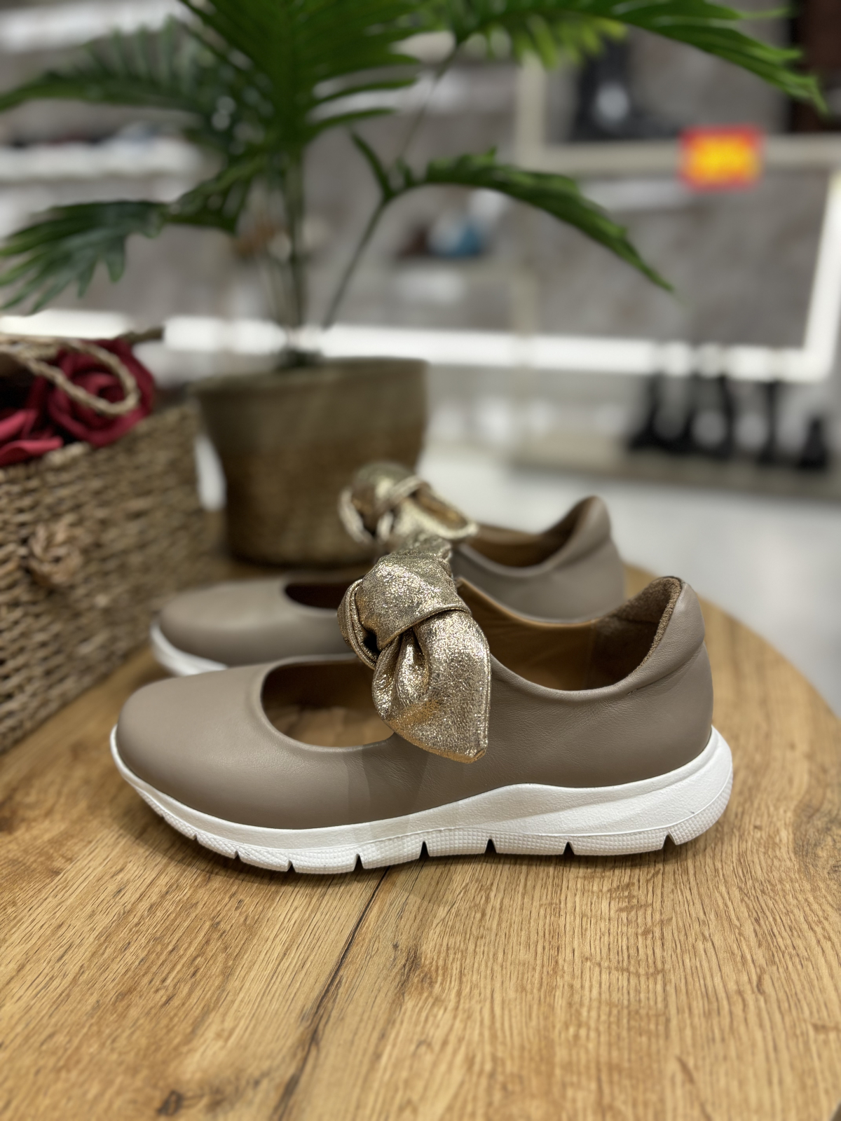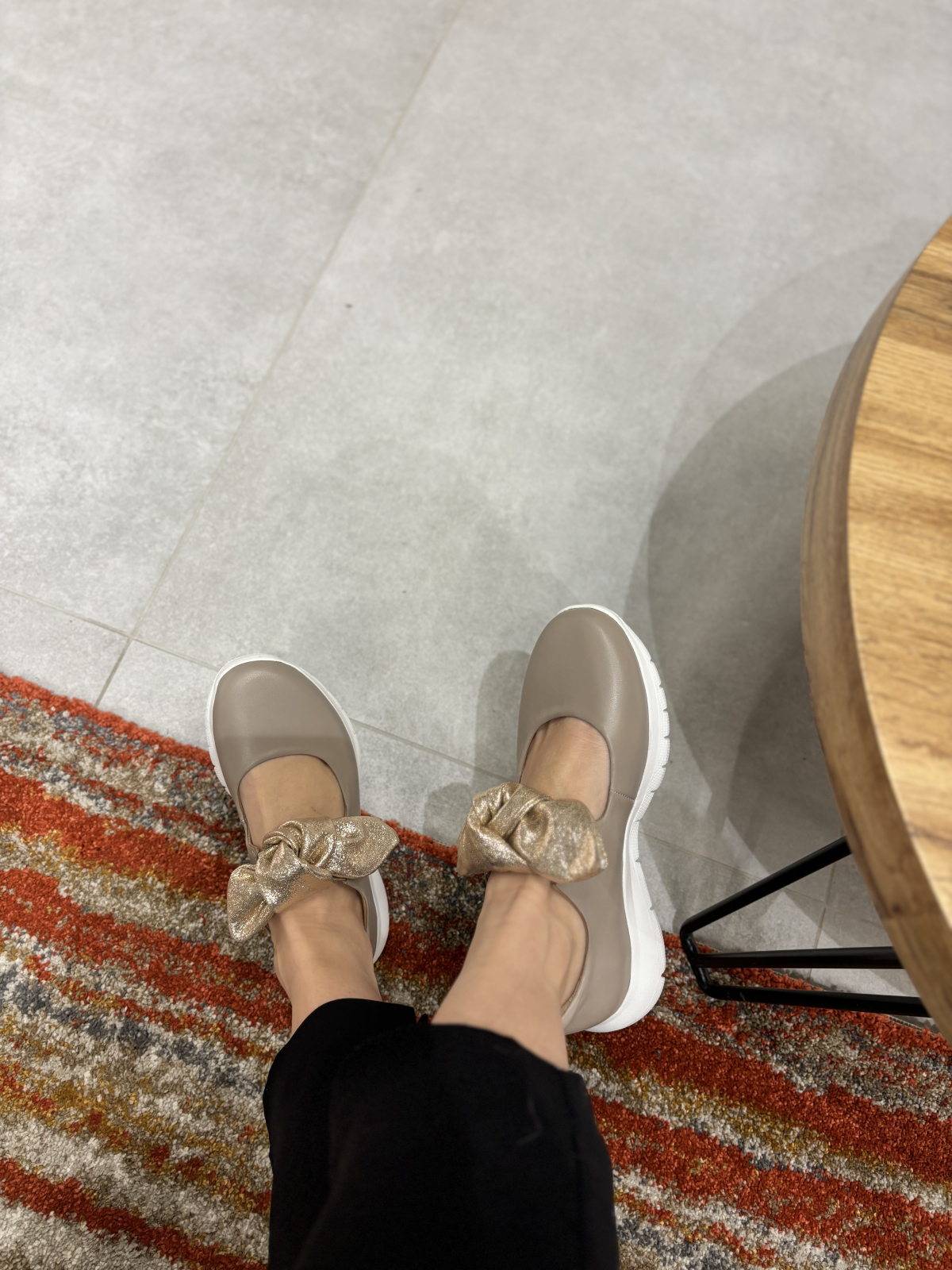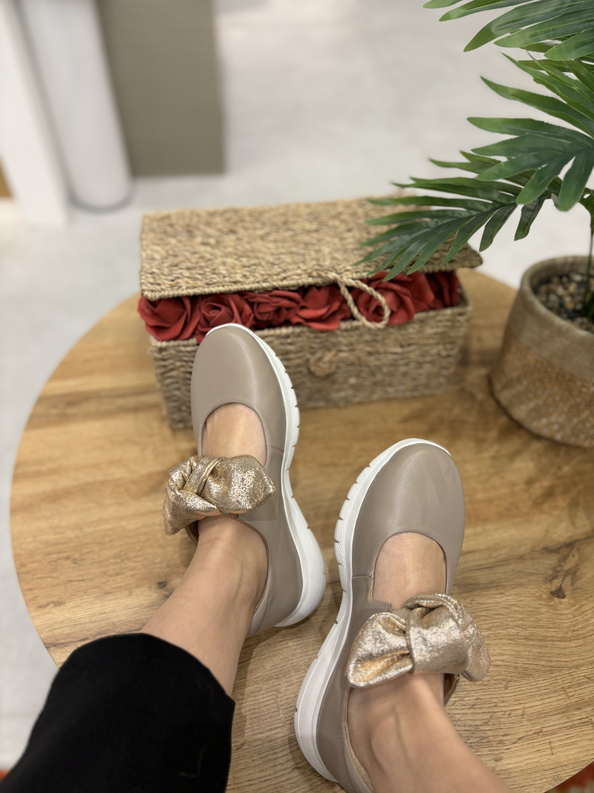 Balerini realizati din piele naturala interior-exterior, accesorizati cu funda aurie din piele nedetasabila. Talpa este realizata din spuma confort, foarte flexibila si moale. Este un model perfect de zi cu zi potrivit la tinute elegant-casual.