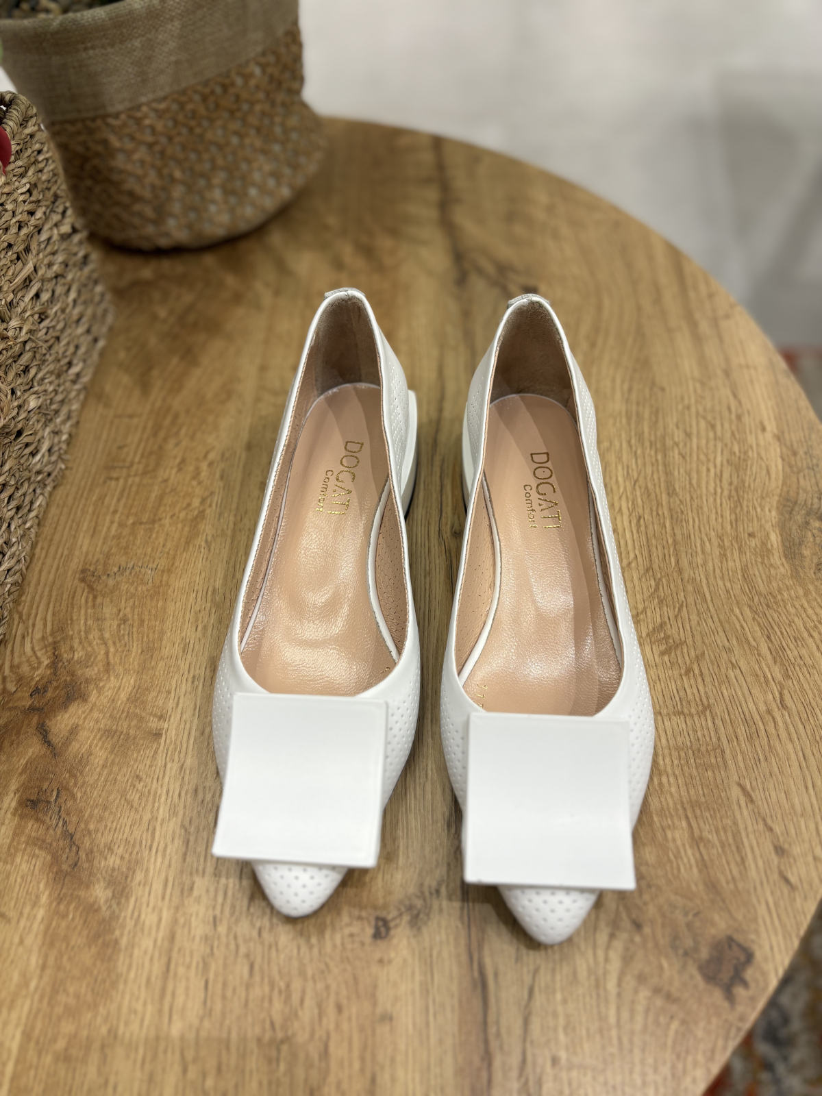 Balerini stiletto albi cu toc patrat