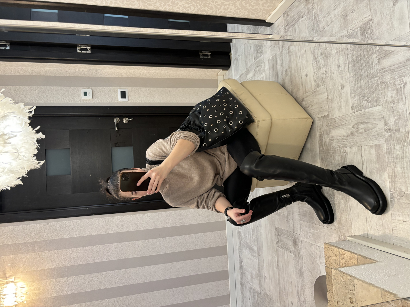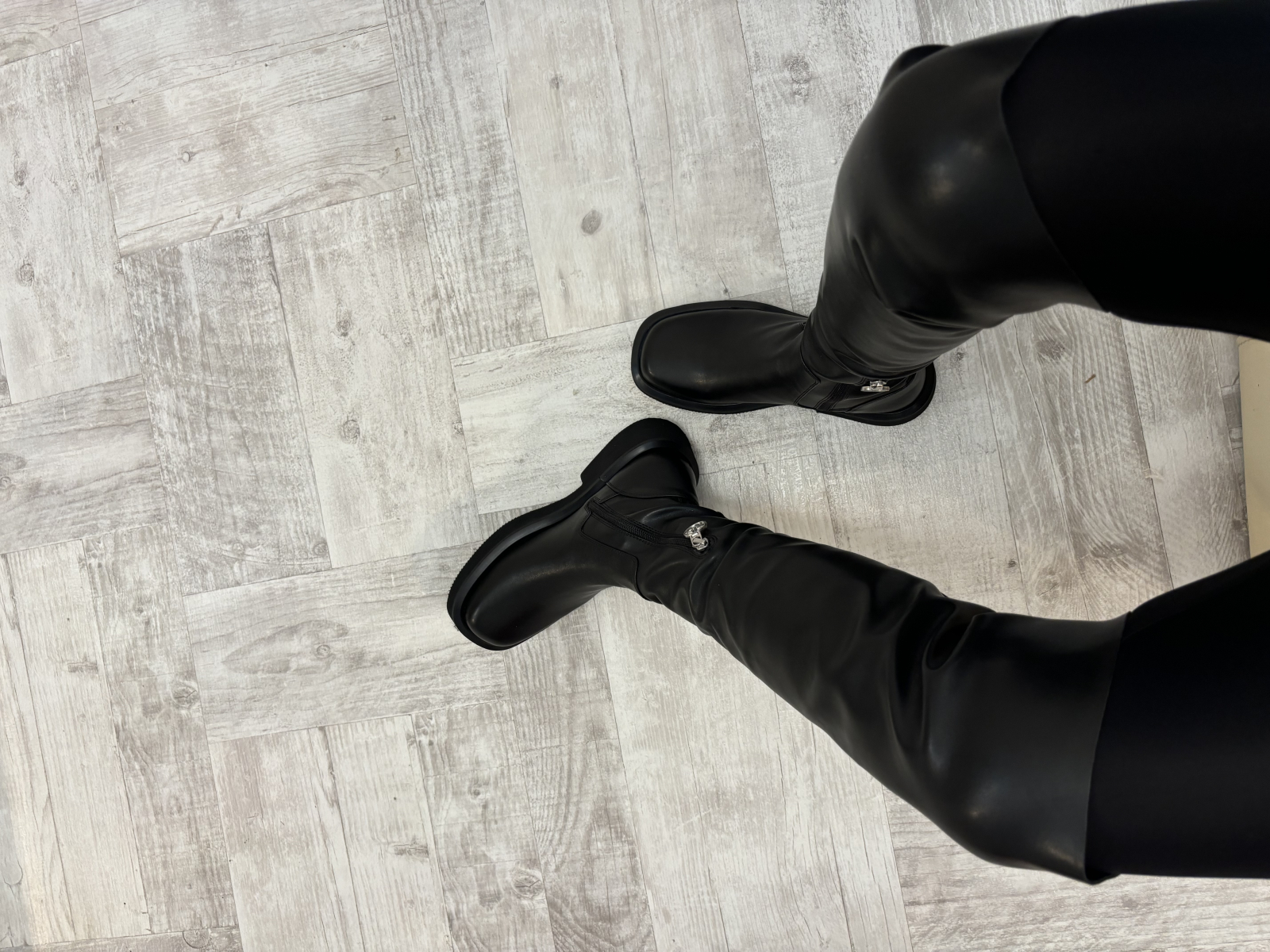 Cizme peste genunchi din piele naturala strech, inchidere cu fermoar. Varful usor patrat ofera confort si un aspect unicat, iar talpa este din material usor si flexibil.