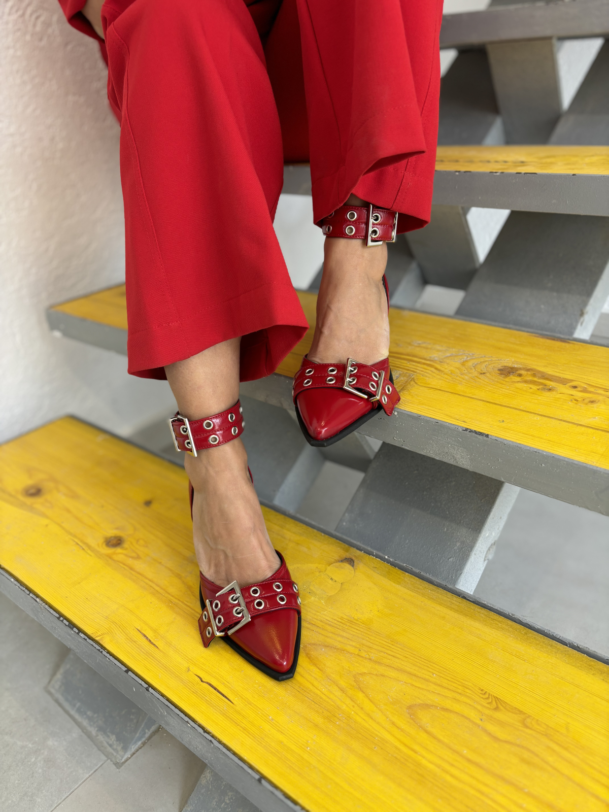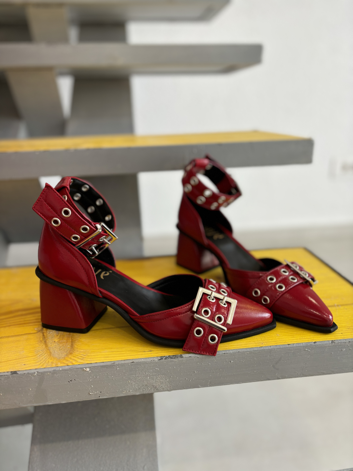 Pantofi negri din piele naturala cu toc bloc foarte stabil de 7 cm. Au varful usor ascutit si accesorizat cu o catarama cu detalii metalice. Pe glezna au o bareta ajustabila din catarama metalica. Sunt foarte potriviti la tinute de zi cu zi atat la rochii cat si la pantaloni sau jeans.