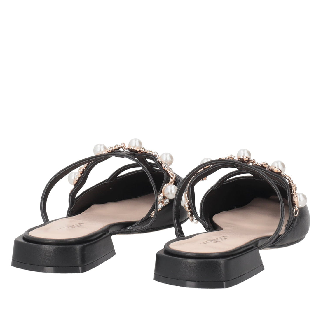 Saboti decupati la spate realizati din piele naturala fina, lucrati atent pe confortul clientului. Tocul de 2 cm oferta stabilitate in timpul mersului si eleganta impreuna cu accesoriul compus din perle si cristale. Sunt potriviti pentru o tinuta de zi cu zi, atat pentru o destinatie office, cat si pentru o tinuta de eveniment.
