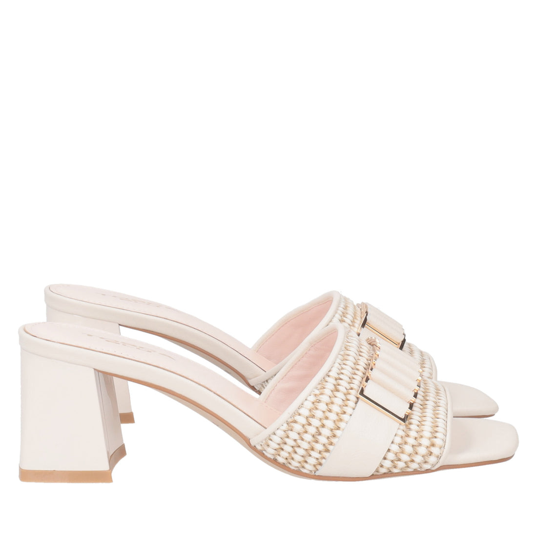 Sabotii sunt ideali pentru femeile care își doresc un echilibru perfect între stil și confort. Realizate din piele naturală netedă si material textil , cu un toc bloc de 6 cm, acestea oferă stabilitate și ușurință în mers. Designul distinctiv, completat de bareta lată și accesoriul delicat aplicat, adaugă o notă de originalitate. Aceste sandale se potrivesc cu succes atât în ținutele casual, cât și în cele office sau elegante, fiind o alegere versatilă pentru orice ocazie.