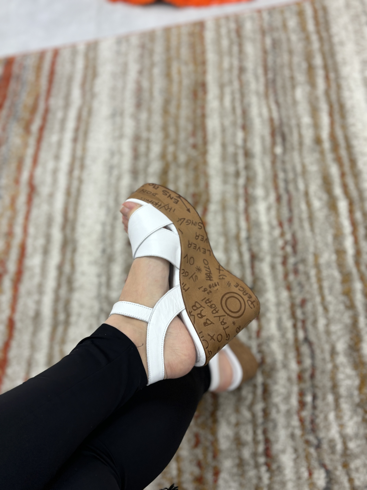 Sandale albe din piele cu platforma