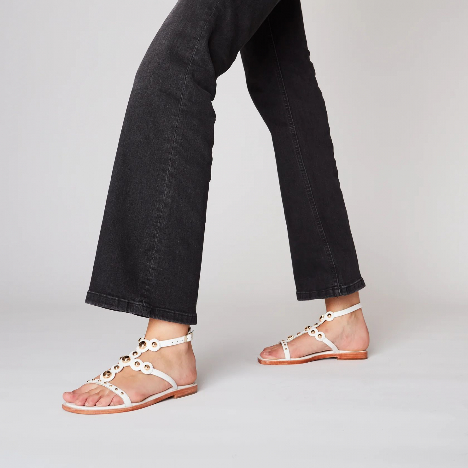 Sandale elegante și confortabile, realizate din piele 100% naturală, cu un design modern și detalii metalice aurii care atrag privirea. Bareta fină și închidere reglabilă asigură o potrivire perfectă, iar talpa joasă de 1,5 cm îți oferă libertatea de a te mișca toată ziua fără griji.
