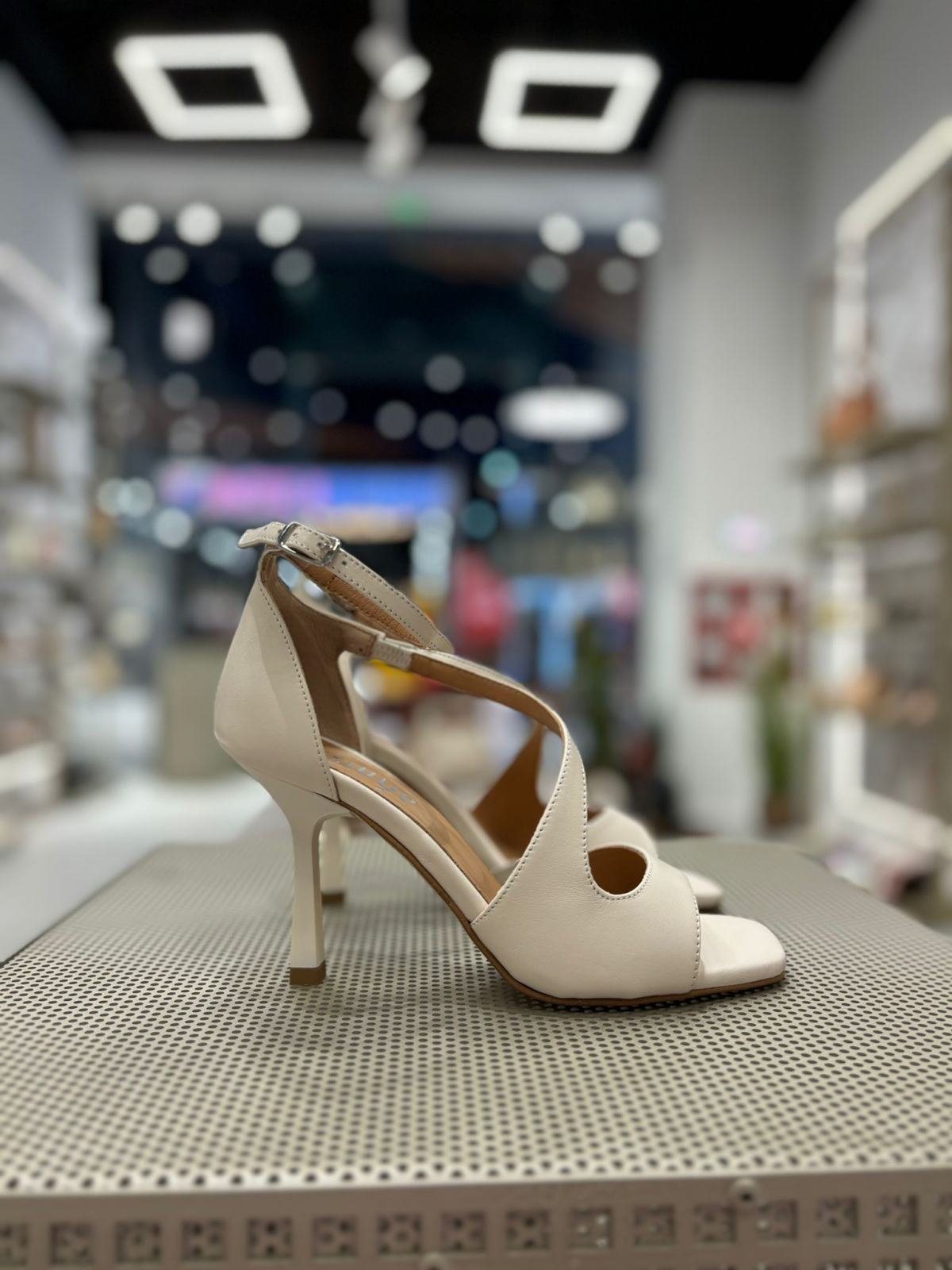 Sandale de dama realizate din piele naturala cu toc de 9 cm confortabil si stabil. Prindere pe glezna cu barete din piele naturala si ajustabile cu catarama metalica.Potrivite atat pentru o tinjuta de eveniment cat si pentru o tinuta de zi cu zi eleganta.