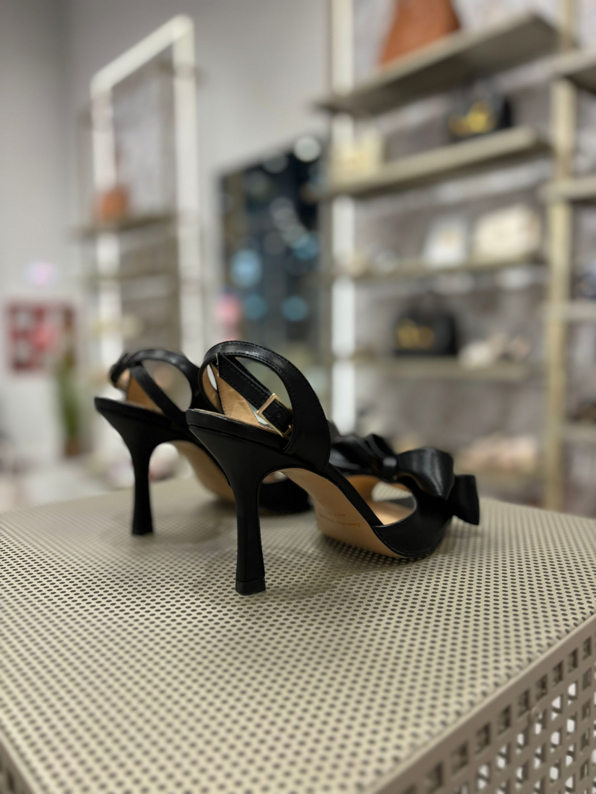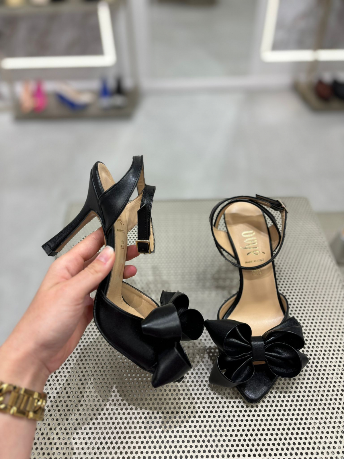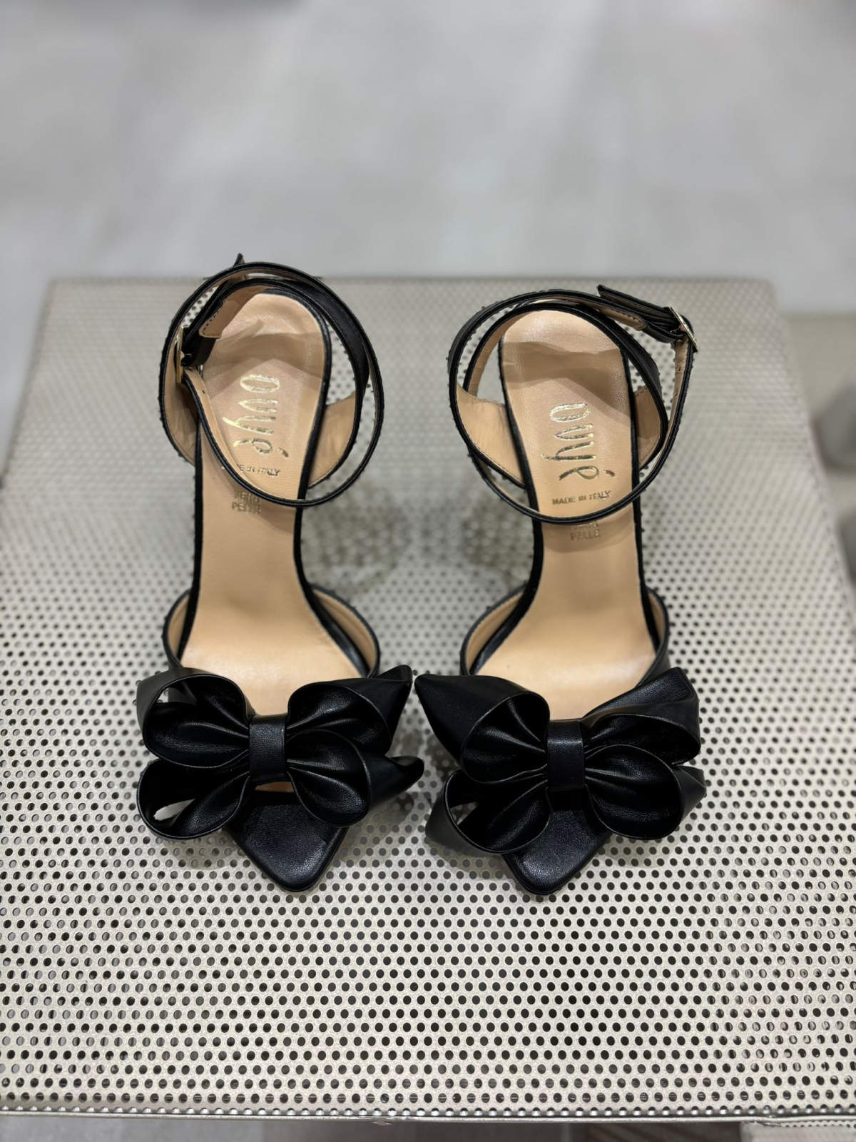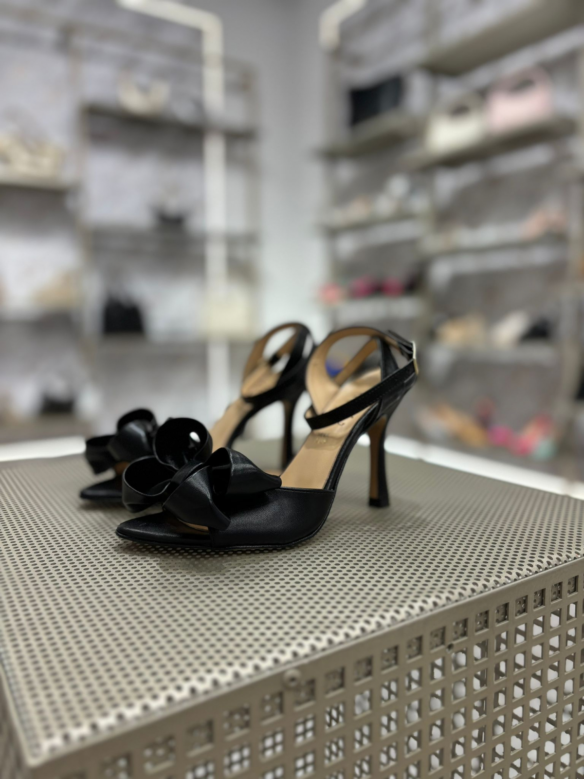 Sandale cu toc de 9 cm confortabil si stabil. Accesorizate cu o funda dubla ce ofera aspect unicat si bareta pe glezna reglabila din catarama metalica. Sunt perfecte la o tinuta de eveniment sau o tinuta office de zi cu zi. Sunt realizate din ecopiele, iar talpicul interior din piele naturala.