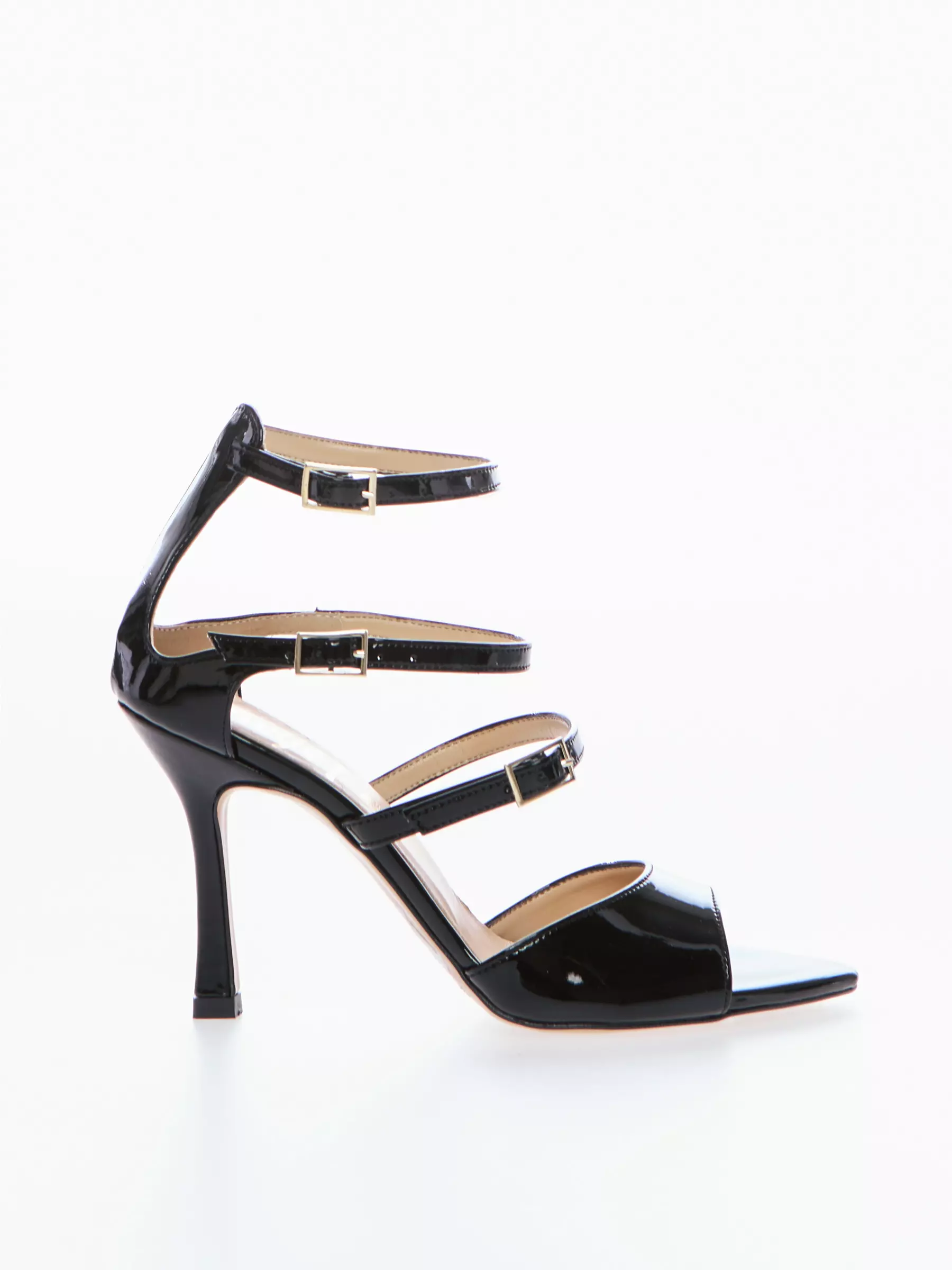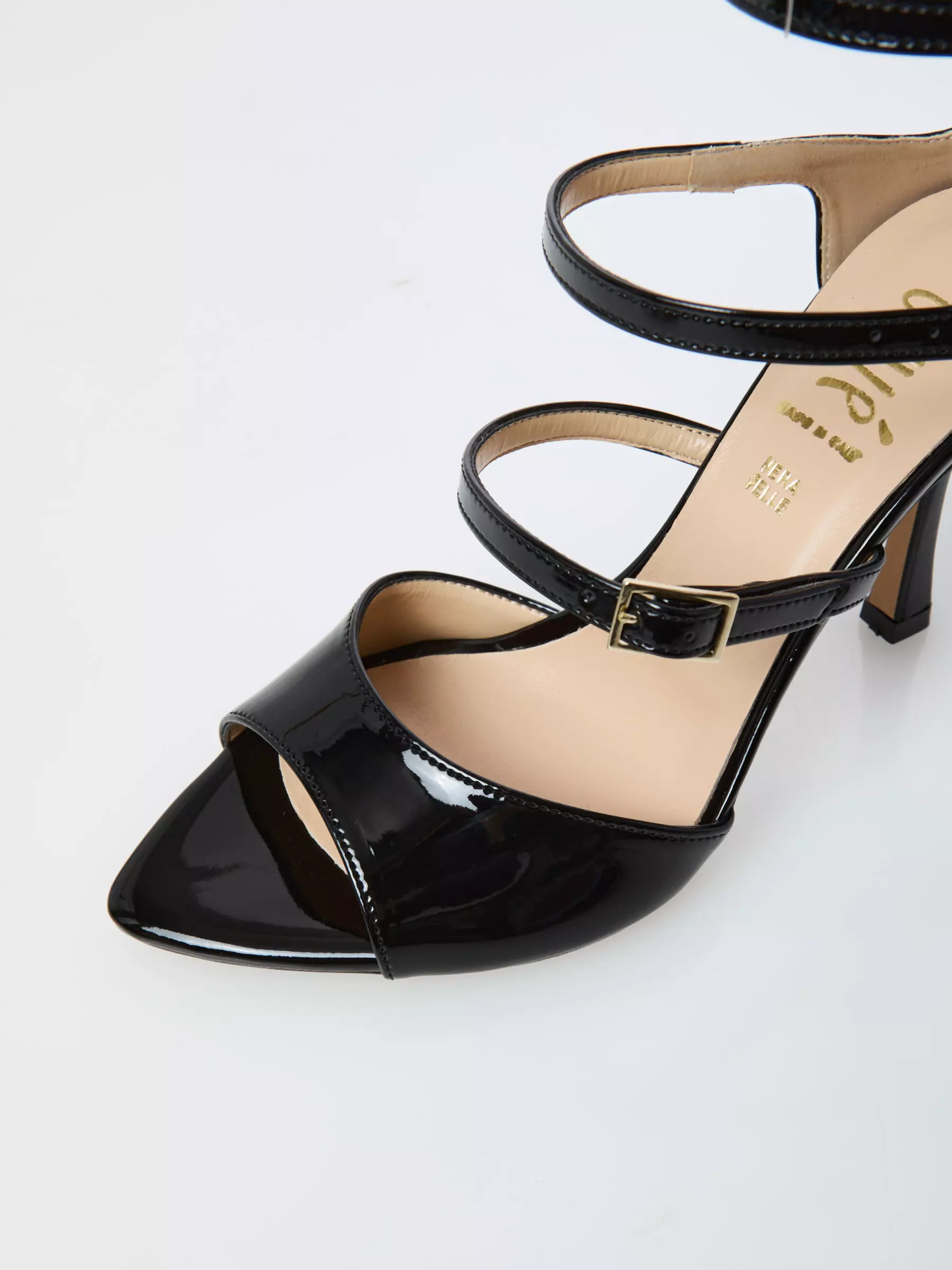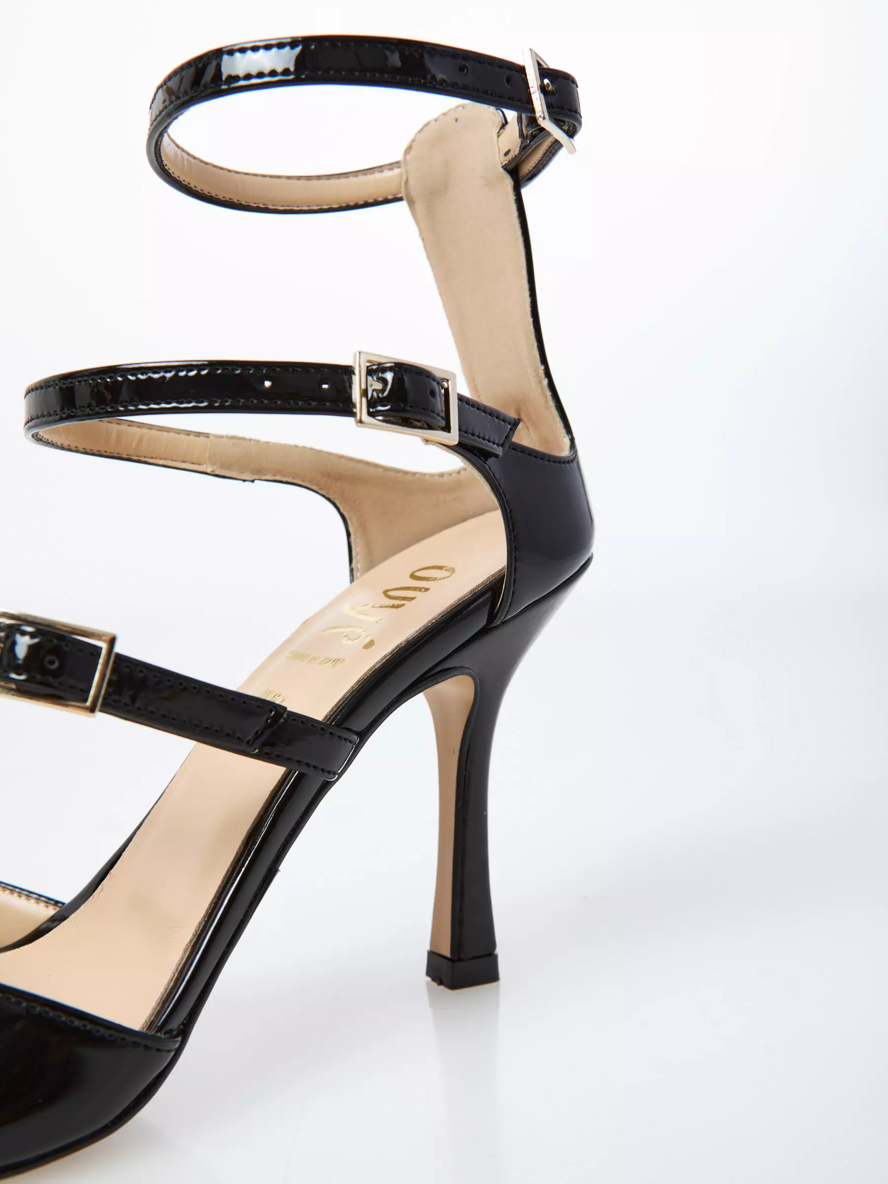 Sandale de dama cu toc de 9 cm realizate din piele naturala cu barete reglabile pe picior din catarama metalica. Foarte potrivite pentru zilele lungi de vara la rochii sau fuste cat si la o tinuta de eveniment. Varful usor ascutit ofera un aspect aparte, iar forma tocului ofera unicitate si stabilitate.